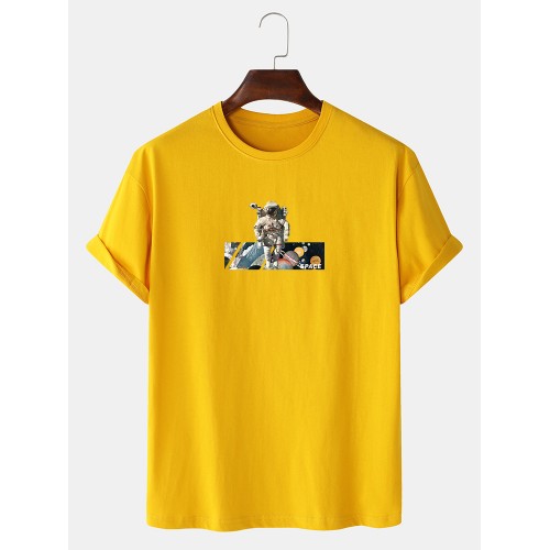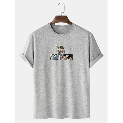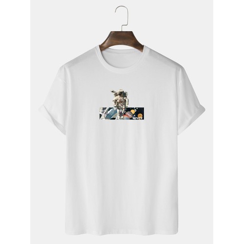 Mens Space Astronaut Graphic 100 Cotton Loose Short Sleeve T Shirts