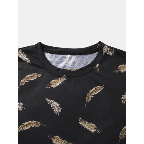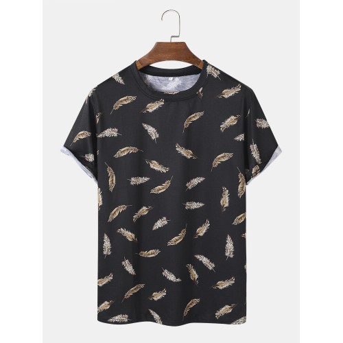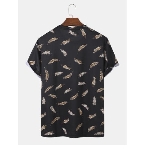 Mens All Over Leaf Printed Holiday Short Sleeve T Shirts