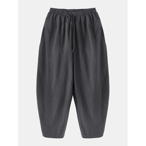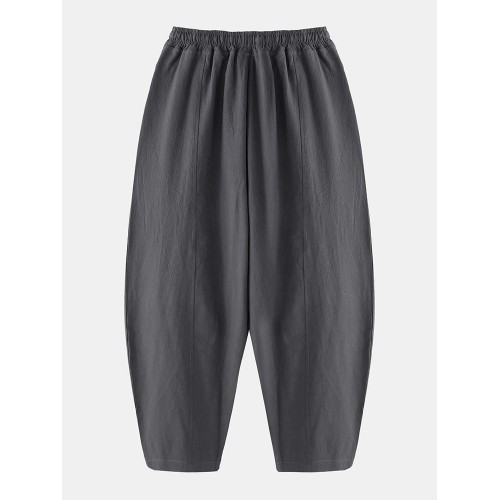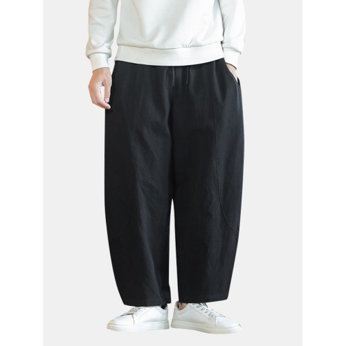 Mens Solid Color Cotton Linen Loose Casual Simple Wide Leg Pants