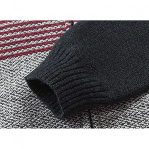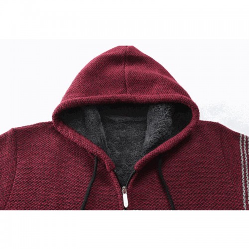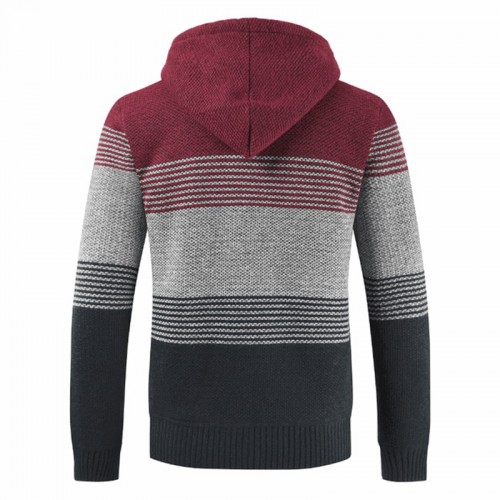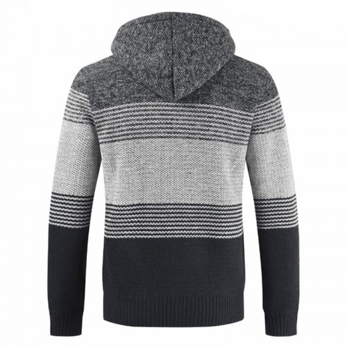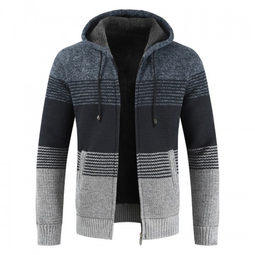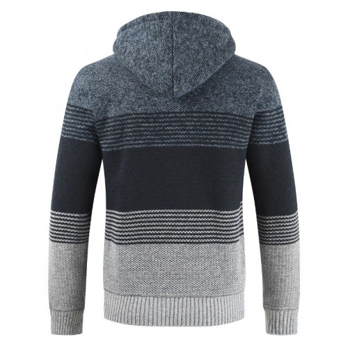 Mens Thick Velvet Casual Thermal Knitting Cardigans Hooded Color Matching Sweaters