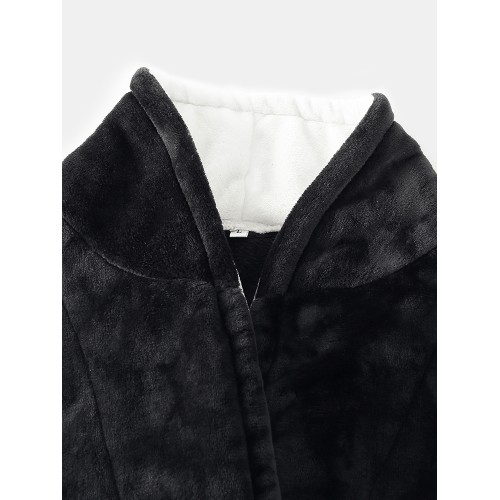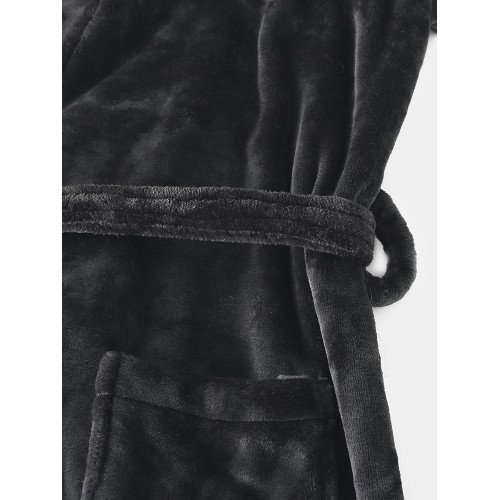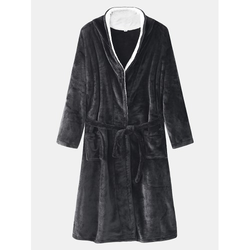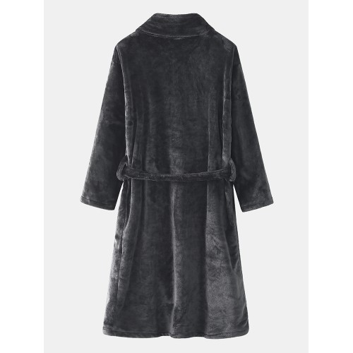 Mens Flannel Thicken Thermal Warm Winter Pajamas Sleepwear Robe With Pocket