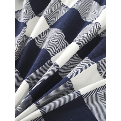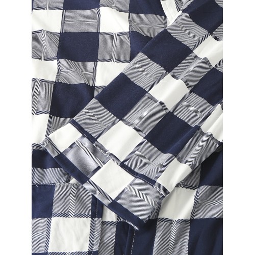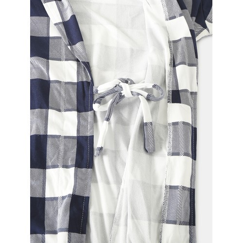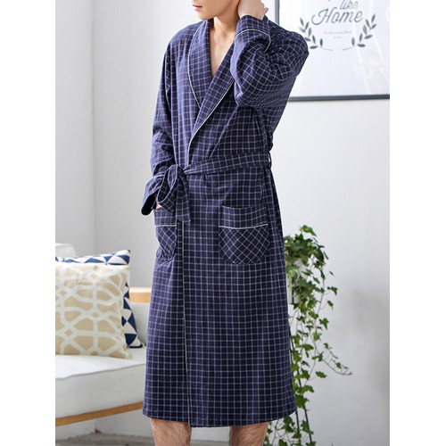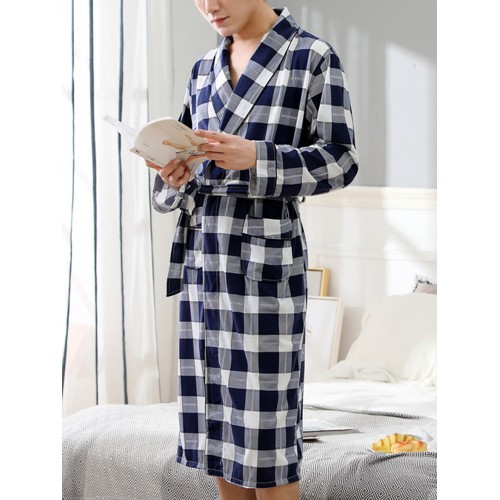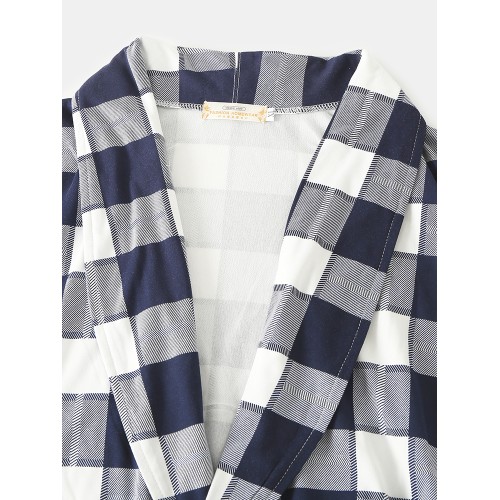 Mens Plaid Print Long Sleeve Comfy Sleepwear Bathrobe Home Robe With Pocket