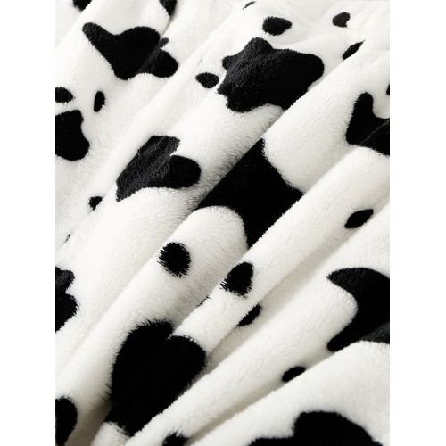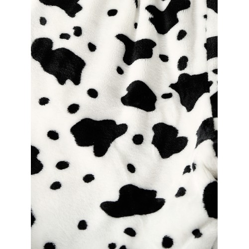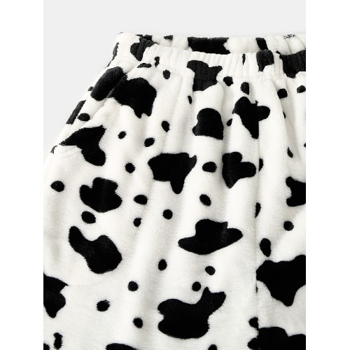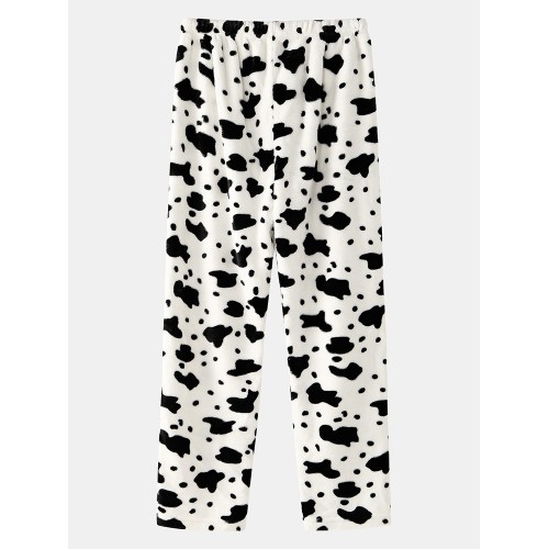 Mens Cows Pattern Thick Elastic Waist Plush Loose Pants Home Sleep Pants