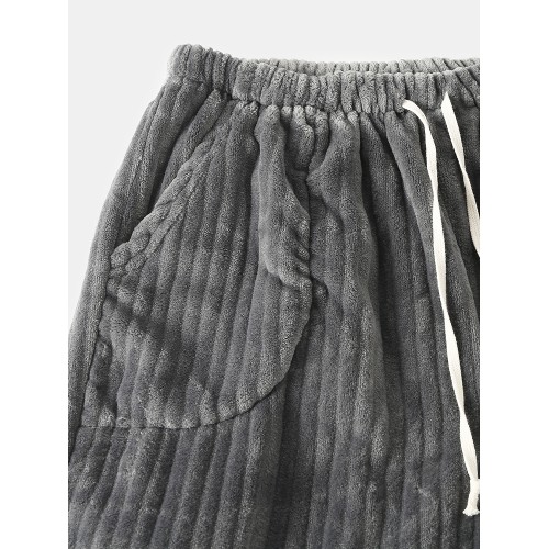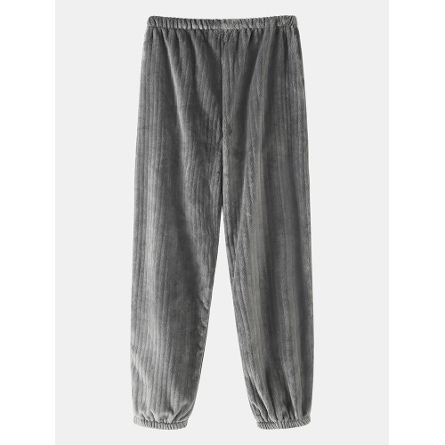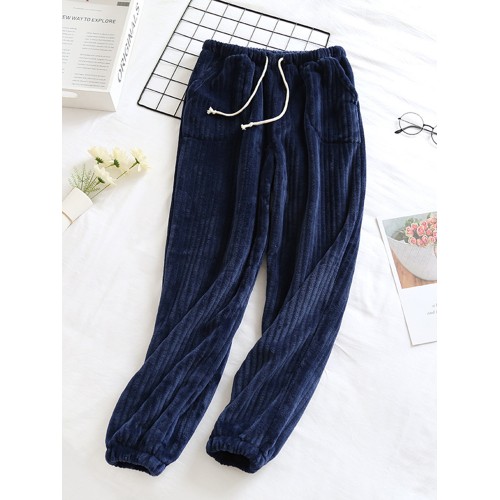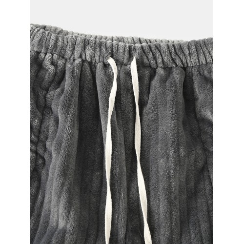 Mens Thick Solid Color Drawstring Plush Comfy Casual Sleepwear Jogger Pants