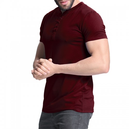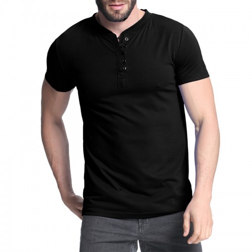 Men T shirts V Neck Casual Short Sleeve Slim Fitted Blouse Short Sleeve with Buttons Outdoor Hiking