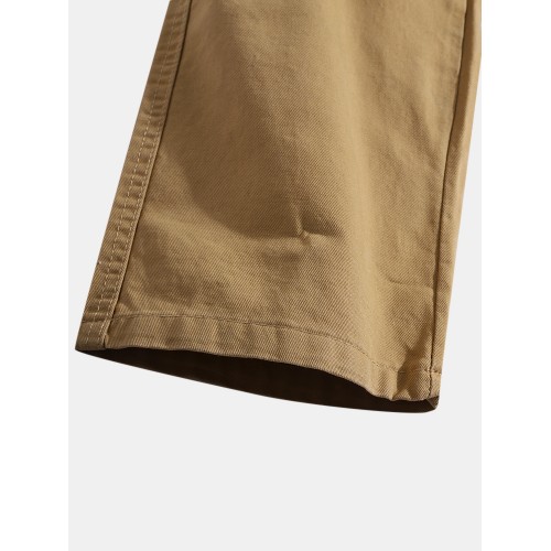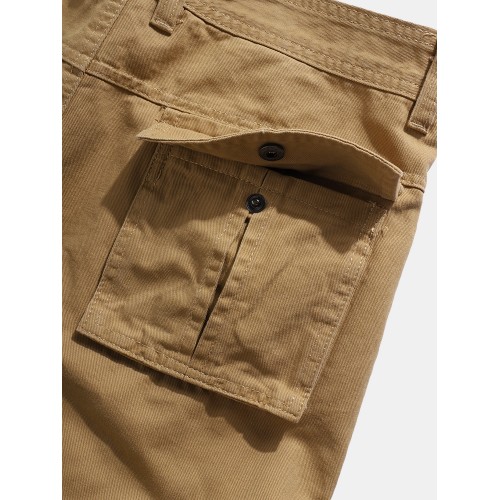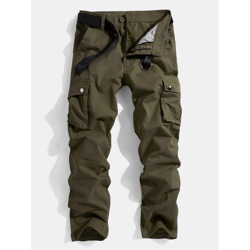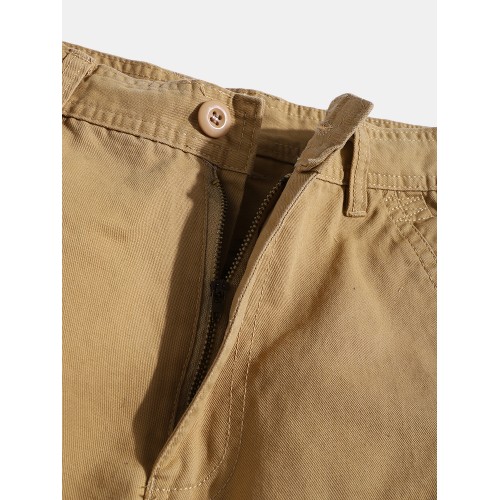 Mens Solid Color Multi Pocket Zipper Fly Mid Waist Casual Pants