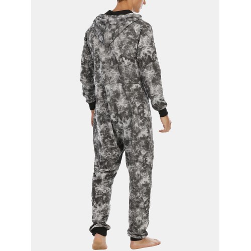 Mens Tie Dye Hooded Jumpsuits Home Fleece Plush Sleepwear With Pocket