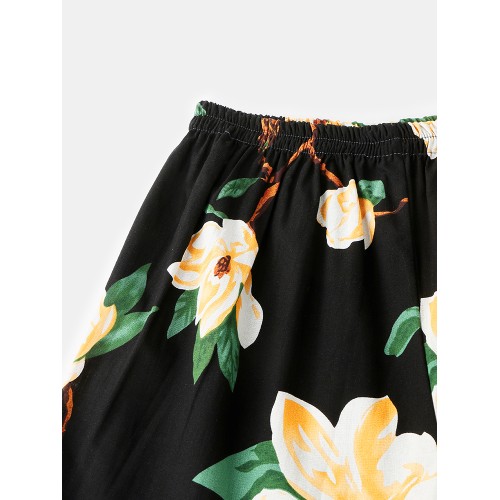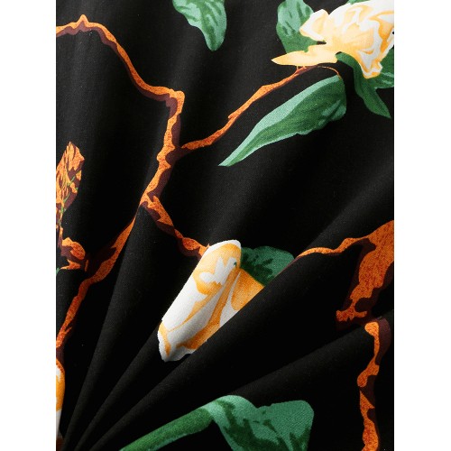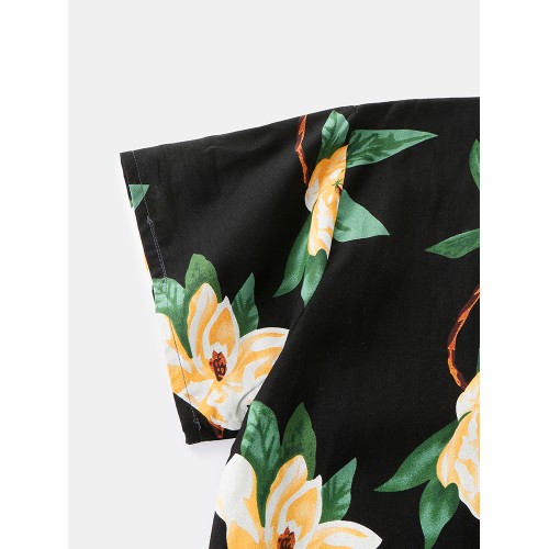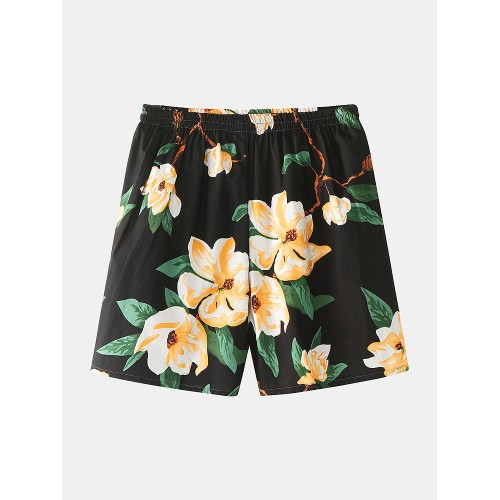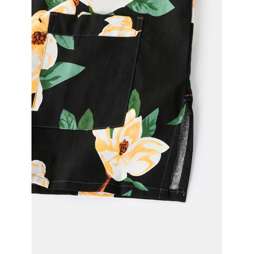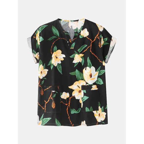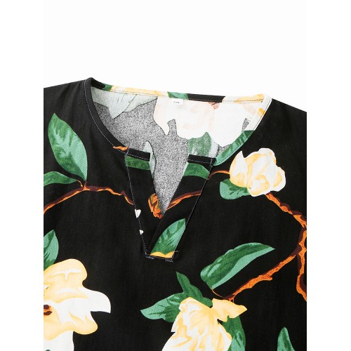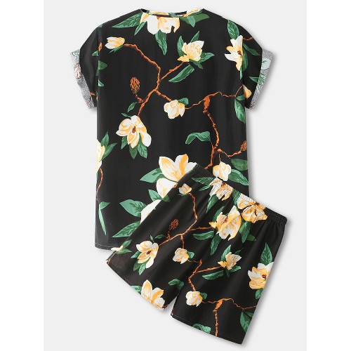 Mens Floral Print V Neck Loose Cotton Comfy Short Loungewear With Pocket